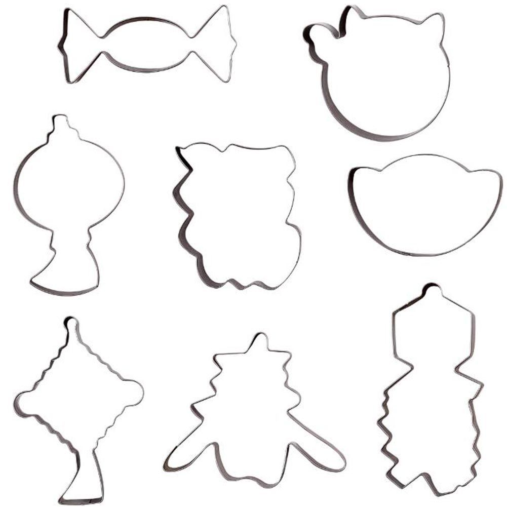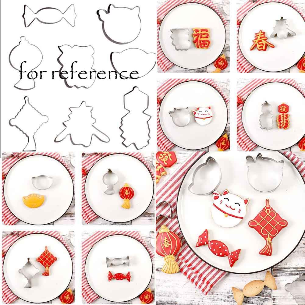 8 Pcs Chinese New Year DIY Stainless Steel Cookie Cutters Mold - Gold Ingot/ Firecracker/ Lantern/ Fu Character 8 Pcs Chinese New Year DIY Stainless Steel Cookie Cutters Mold - Gold Ingot/ Firecracker/ Lantern/ Fu Character